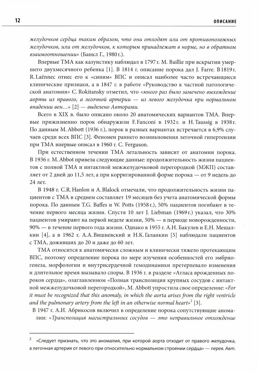 В монографии описываются история, детальная анатомия, диагностика и методы хирургической коррекции всех форм транспозиции магистральных артерий, которые встречаются в клинической практике врача. В работе использован практически полный список доступной мировой литературы по изучаемому вопросу, а также собственный взгляд на проблему, сложившийся в нмиц «Сердечно-сосудистой хирургии им. А. Н. Бакулева», который по праву является пионером в хирургическом лечении этого заболевания в России.